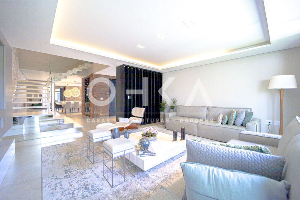 A sala possui um living com lareira para vários e amplos ambientes, lavabo, sala de jantar integrada com a cozinha.