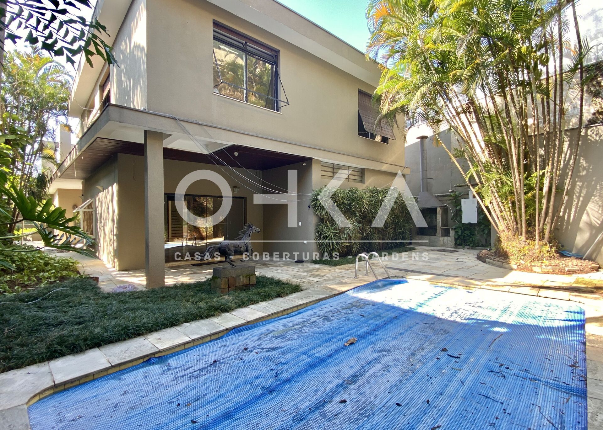 Ótimo sobrado com excelente luz natural. Oferece amplos ambientes, muito bem distribuídos. Sua área externa conta com um terraço integrado ao living, piscina, churrasqueira e jardim. Uma bela localização em rua fechada, tranquila e arborizada.