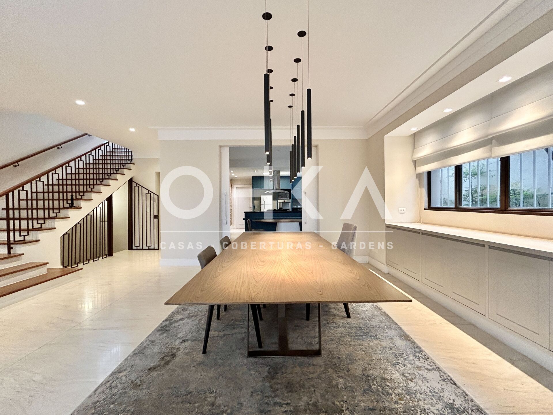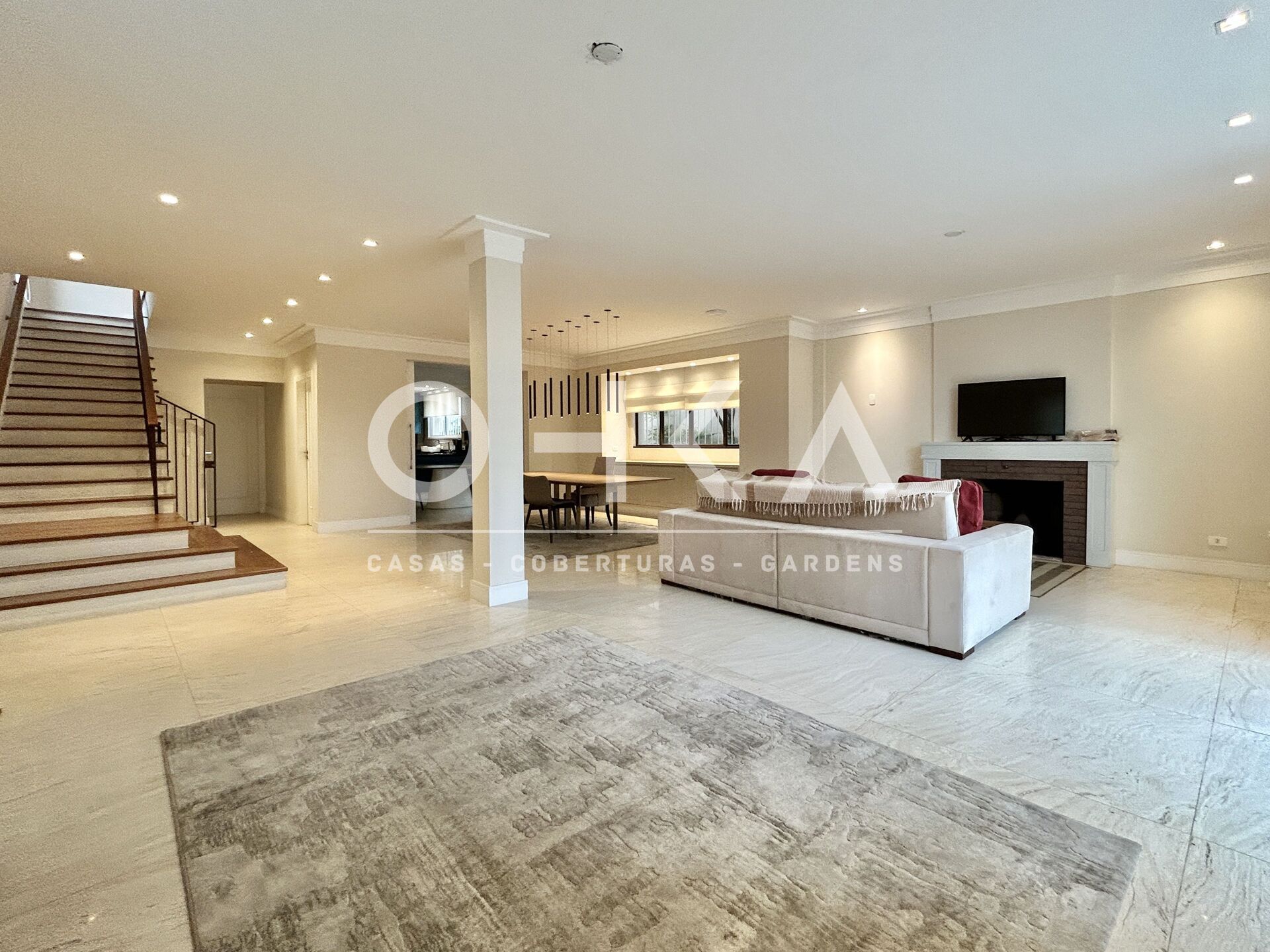 4 Dormitórios, sendo 4 suítes5 Banheiros2 VagasGaragem Coberta1 Closet1 Escritório1 Copa1 Sala de TV1 Cozinha2 Lavabos1 Sala de jantar2 Salas de estar1 Área de serviço1 Dependência p/empregada