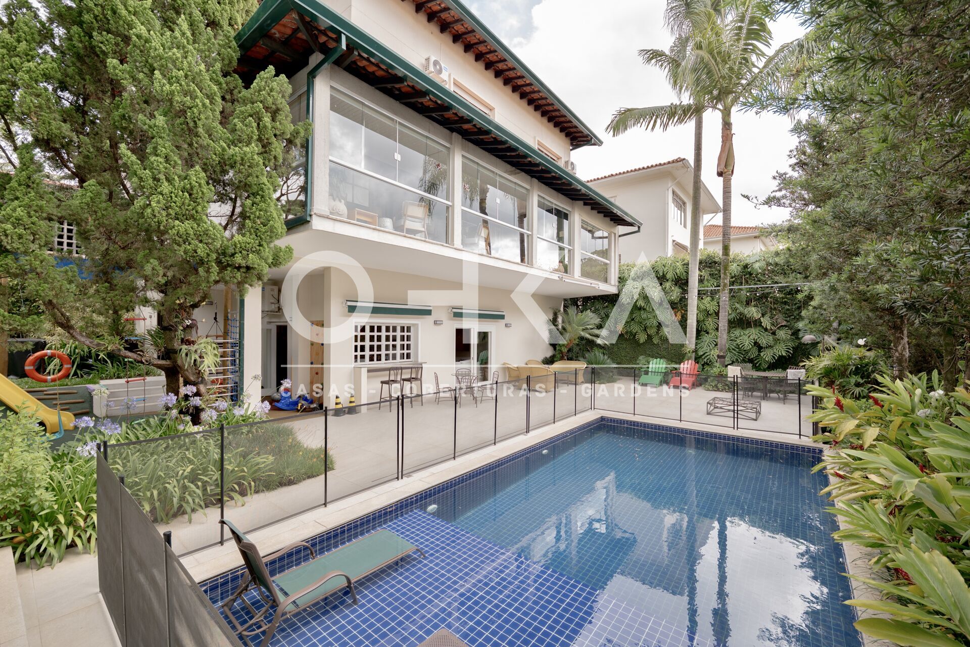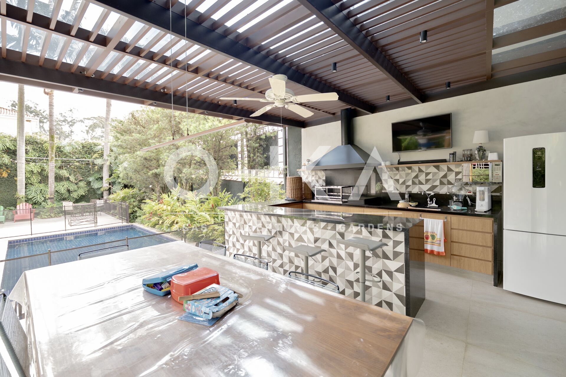 Com 4 salas, 2 lavabos, varanda, ar condicionado em todos os ambientes, lareira na sala e na suíte master, 2 escritórios, copa e cozinha, salão de festas integrado a piscina, área gourmet completa, jardim, pista de skate, playground.