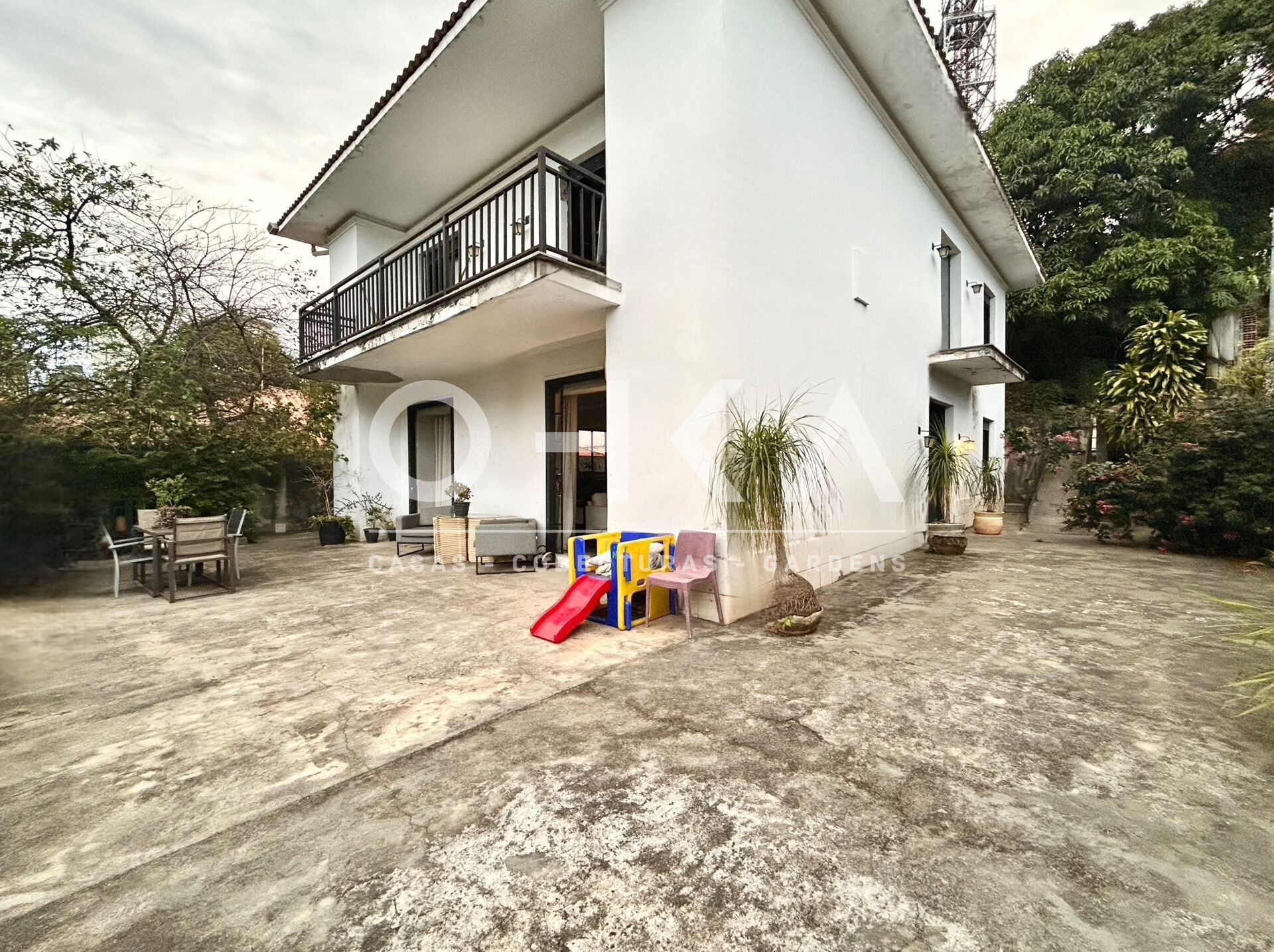 Casa em rua fechada, com portão e portaria 24 horas. Oferece planta arquitetônica quadrada, com ambientes amplos e integrados e três suites. Originalmente tinha um quarto dormitório, que foi integrado à suite do casal, mas facilmente reversivel. Conta com pé direito alto, terraço com vista aberta, privativa e hidráulica renovada.