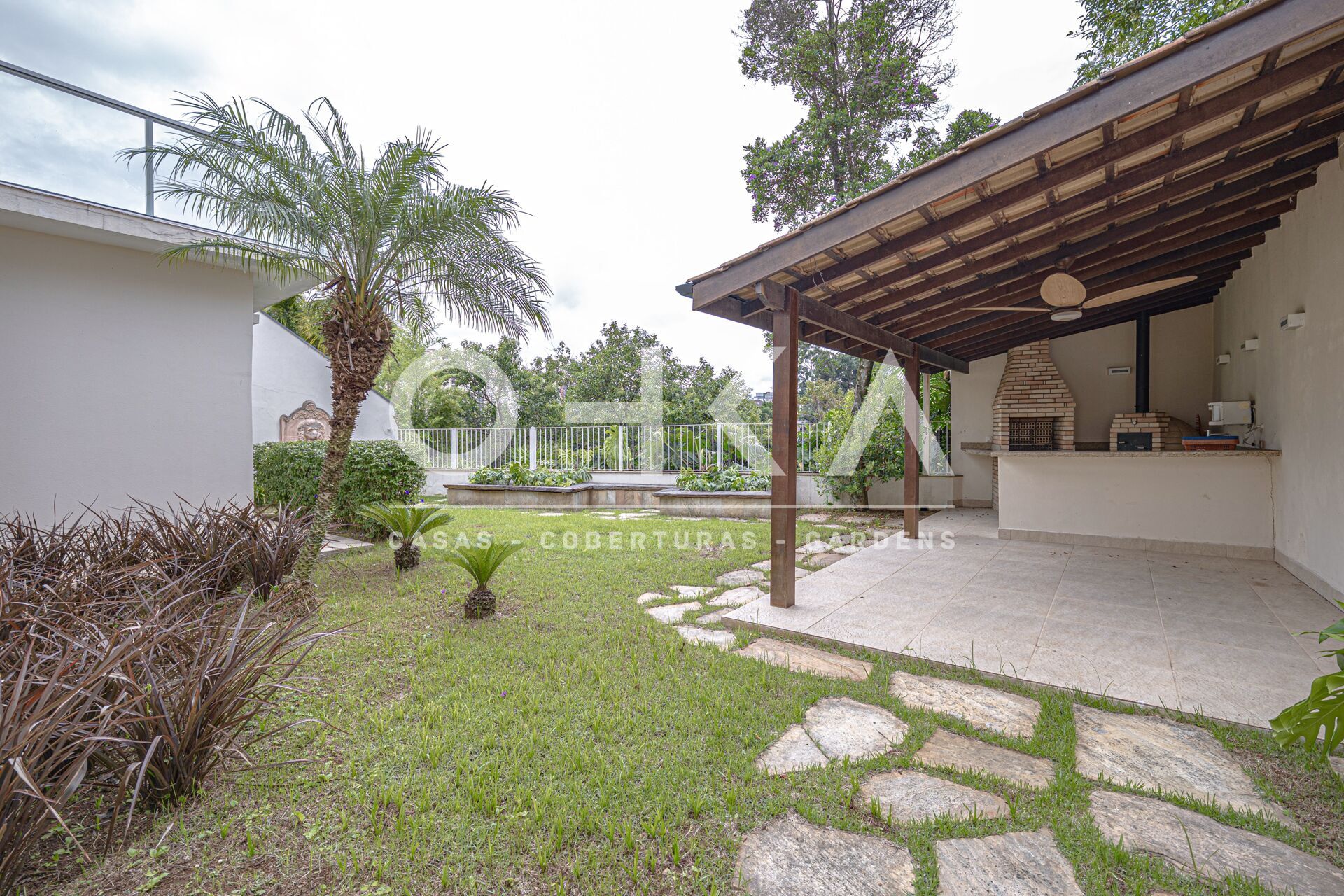 Na parte dos fundos possui um lindo jardim, área gourmet, com churrasqueira, forno de pizza, academia e 7 vagas para automóveis.